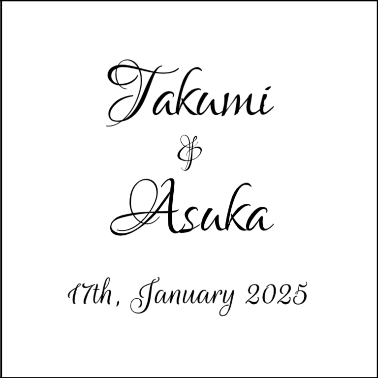 お名前や文章はご希望の内容に変更可能です。 また、お名前や文章に応じて、文字のサイズやバランスを変更させていただく場合があります。
